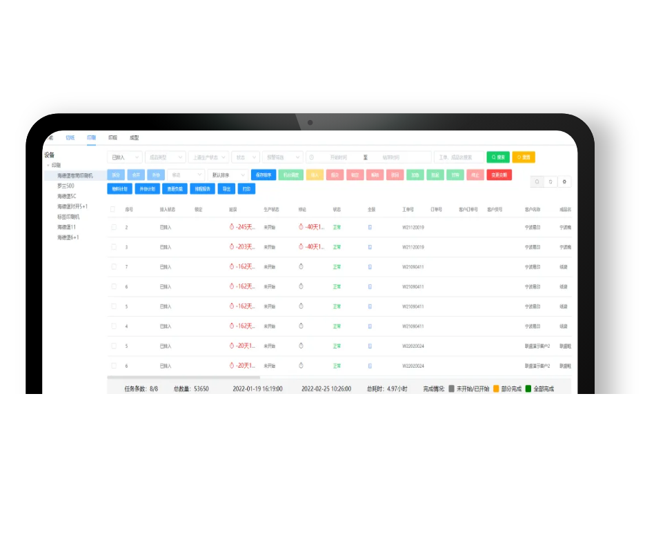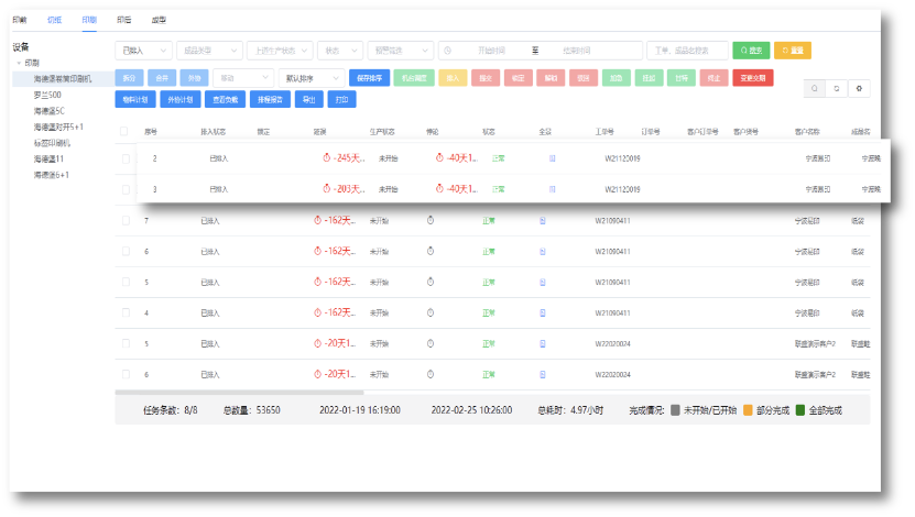4.支持各個(gè)機(jī)臺(tái)根據(jù)交貨時(shí)間,印色,幅面等條件進(jìn)行自動(dòng)排序,同時(shí)也可進(jìn)行手動(dòng)拖拉;