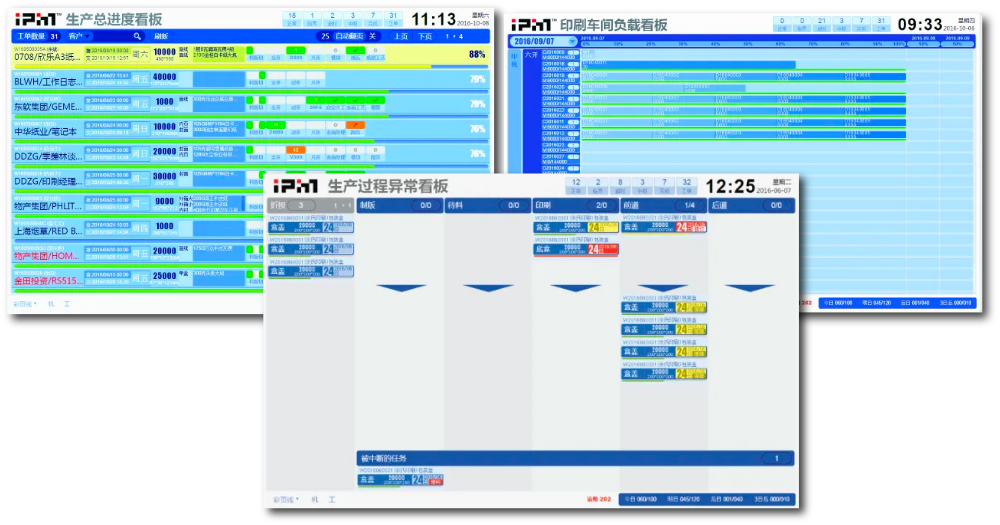 生產(chǎn)異??窗?;生產(chǎn)全局進(jìn)程;車(chē)間設(shè)備負(fù)載動(dòng)態(tài)展示
