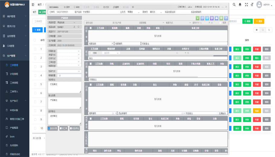 3.選擇不同成品類(lèi)別可以出現(xiàn)不同界面,系統(tǒng)能支持印刷行業(yè)各種業(yè)務(wù)類(lèi)型。